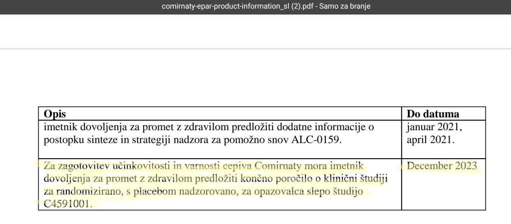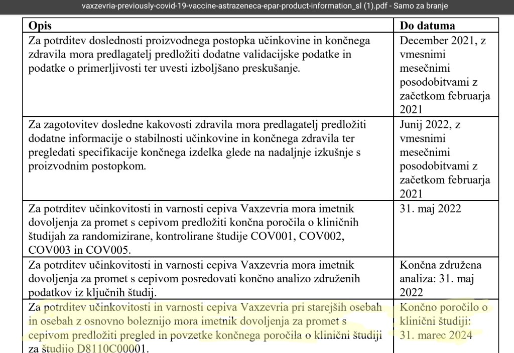 Mar ne bi bilo primerneje, če bi vlada, ministri, državni sekretarji in izbrani del stroke enostavno že odkar so se pojavila cepiva pošteno stopili pred ljudi in izjavili na primer: “Soočamo se z epidemijo virusa Sars-CoV-2. Trenutno imamo na voljo cepiva zoper ta virus. Državljanom smo dolžni povedati, da vsega o teh novih cepivih še ne vemo, saj formalno klinična študija še poteka. Kar pa je znano, je to, da glede na podatke, s katerimi trenutno razpolagamo, prevladuje korist nad morebitnimi tveganji, sicer EMA tem cepivom ne bi izdala pogojnega dovoljenja. Kljub temu se čutimo dolžne državljane obvestiti, da se bodo podatki glede zaznanih stranskih učinkov najverjetneje sčasoma dopolnjevali, saj vseh trenutno, objektivno še ne moremo poznati. Proizvajalec je namreč dolžan redno spremljati in zbirati dokumentacijo o neželenih učinkih ter o zbranih podatkih redno poročati EMA. Ne moremo tudi zagotoviti koliko časa traja zaščita, saj klinične študije tudi o tem še potekajo. Kljub vsemu pa, ker zaupamo v znanost in stroko predlagamo, da se državljani cepijo, pri čemer pa naj bodo vendarle pozorni na morebitne stranske učinke, katere naj takoj prijavijo in v primeru resnosti le-teh, nemudoma obiščejo najbližjo zdravstveno ustanovo...”