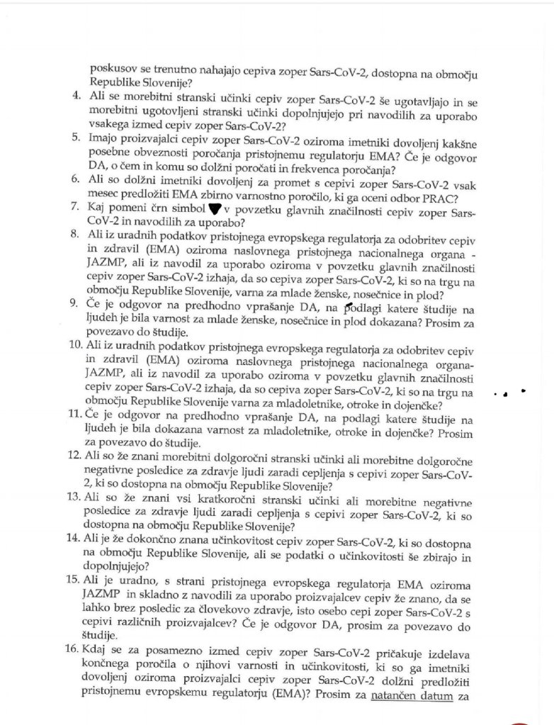 Zainteresiranemu bralcu tako v pregled in preučitev ponujam vprašanja ter doslej prejete odgovore s strani pristojne Agencije za zdravila in medicinske pripomočke – JAZMP. Podčrtani ali drugače označeni deli vsebine odgovora so sicer posledica mojega “posega v zapis”, sama vsebina odgovora pa je nespremenjena in priložena v celoti.
