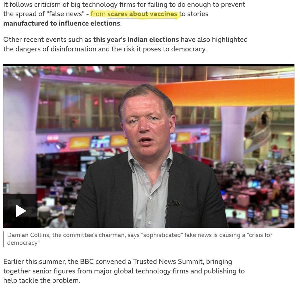 A vrnimo se za trenutek v leto 2019. Poleg opozoril o pojavu ekstremnega problema anticepilstva, na katerega je marca 2019 nejevoljno opozoril britanski minister za zdravje, se je ta grožnja v tistem letu tako stopnjevala, da je na hierarhični lestvici globalno-političnih groženj oziroma prioritet, ki jih je potrebno pod okriljem Trusted news initiative nemudoma nasloviti, po pomembnosti prehitela terorizem in zavzela primat, skupaj z bojem proti lažnim novicam v zvezi z volitvami v ZDA. Septembra 2019, torej le tri mesece pred poplavo posnetkov o padajočih ljudeh iz Wuhana, so namreč varuhi svobodnih novic izrecno izpostavili problematiko, ki bi se marsikomu takrat zdela povsem obskurna: Velika tehnološka podjetja, “Big Tech”, naj ne bi storila dovolj za preprečevanje širjenja “lažnih novic” glede strahov o cepivih!