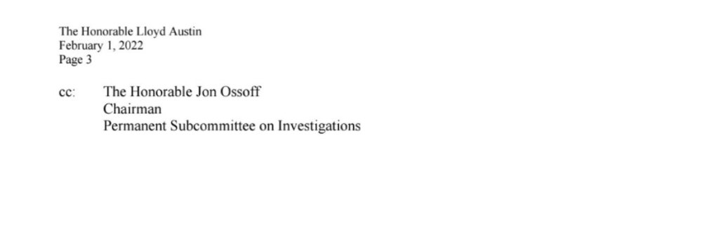 - Pismo Rona Johnsona, rednega člana Stalnega pododbora za preiskave, naslovljeno na Lloyda Austina,