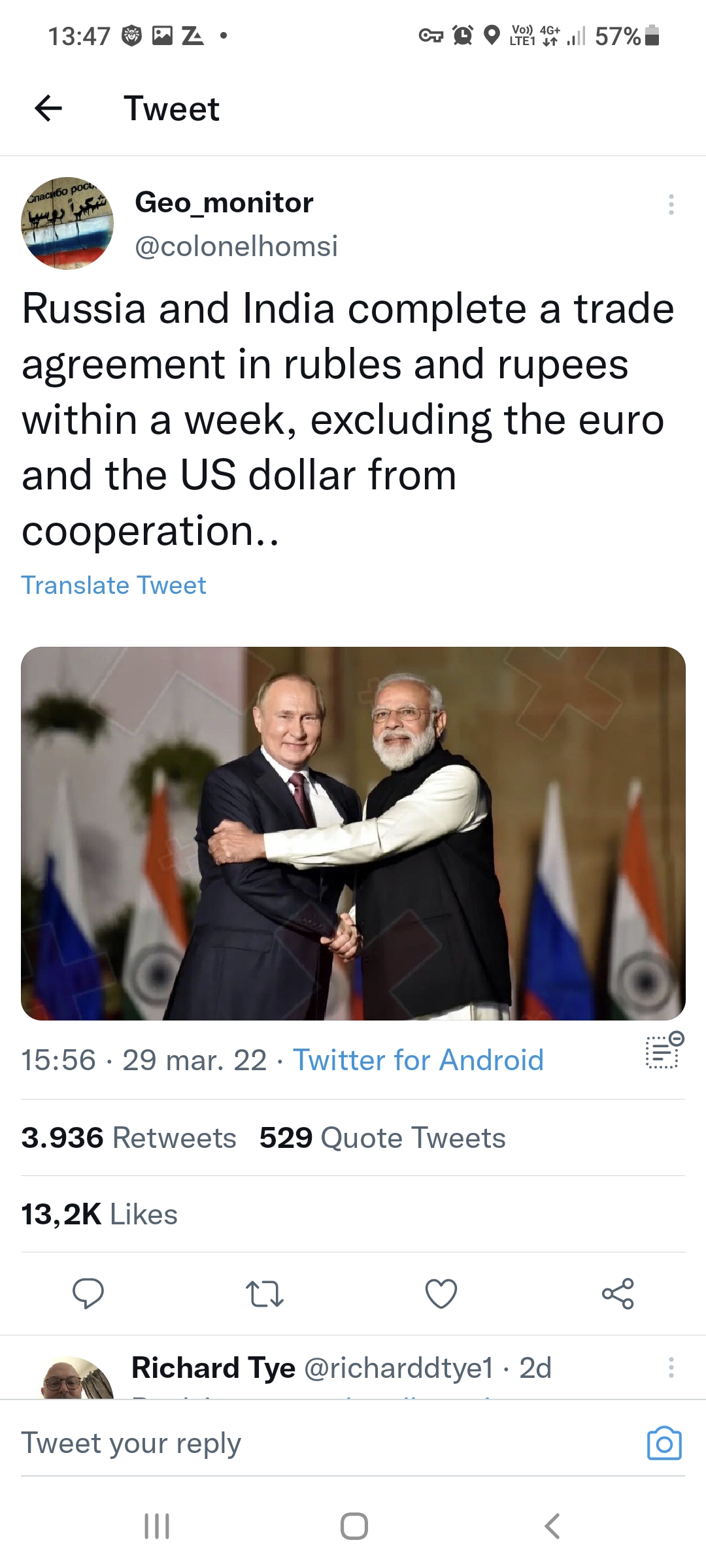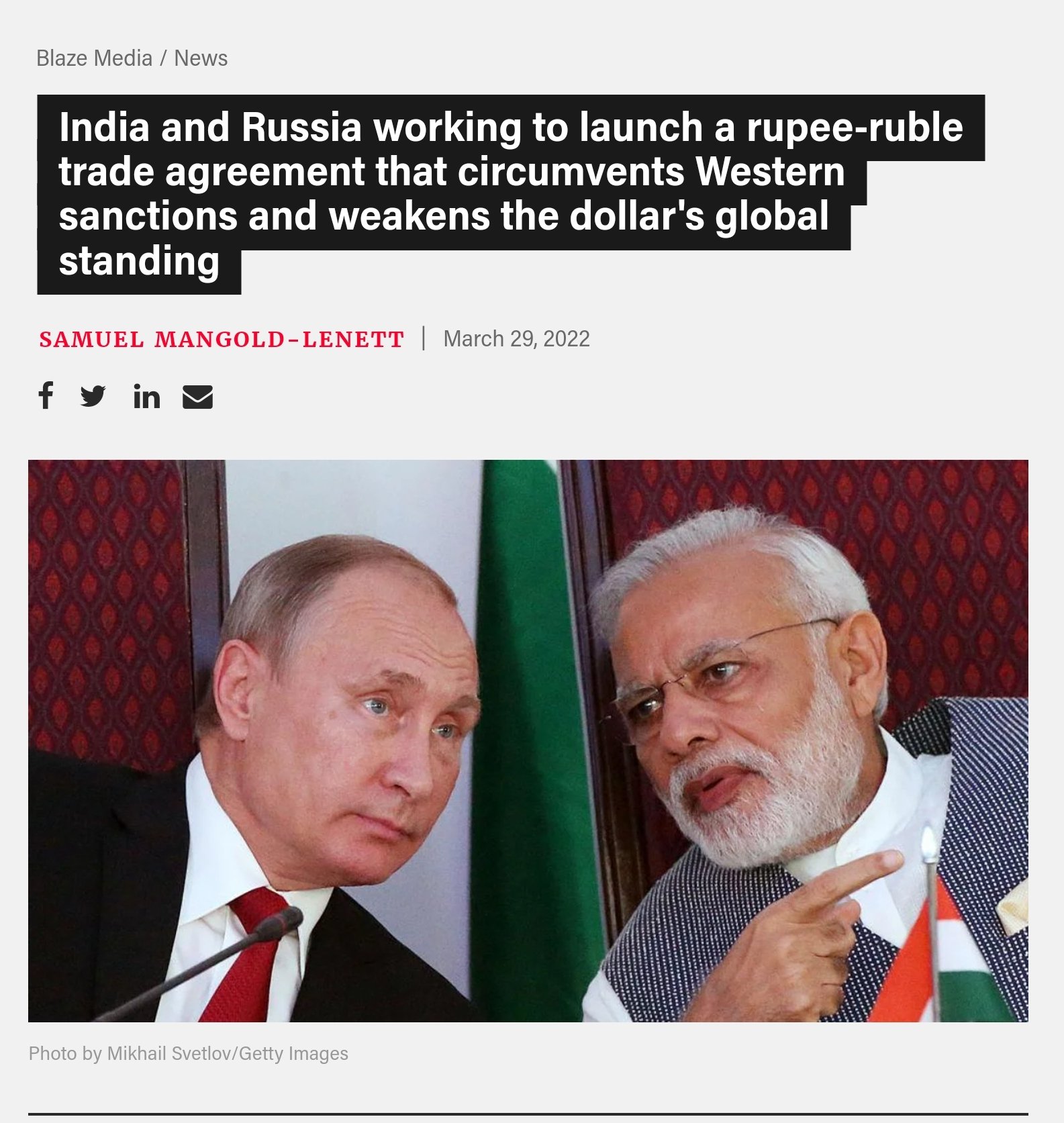 https://www.ndtv.com/world-news/china-russia-more-determined-to-boost-ties-says-beijing-2852646 https://www.theblaze.com/news/india-russia-rupee-ruble-trade-agreement-circumvents-sanctions