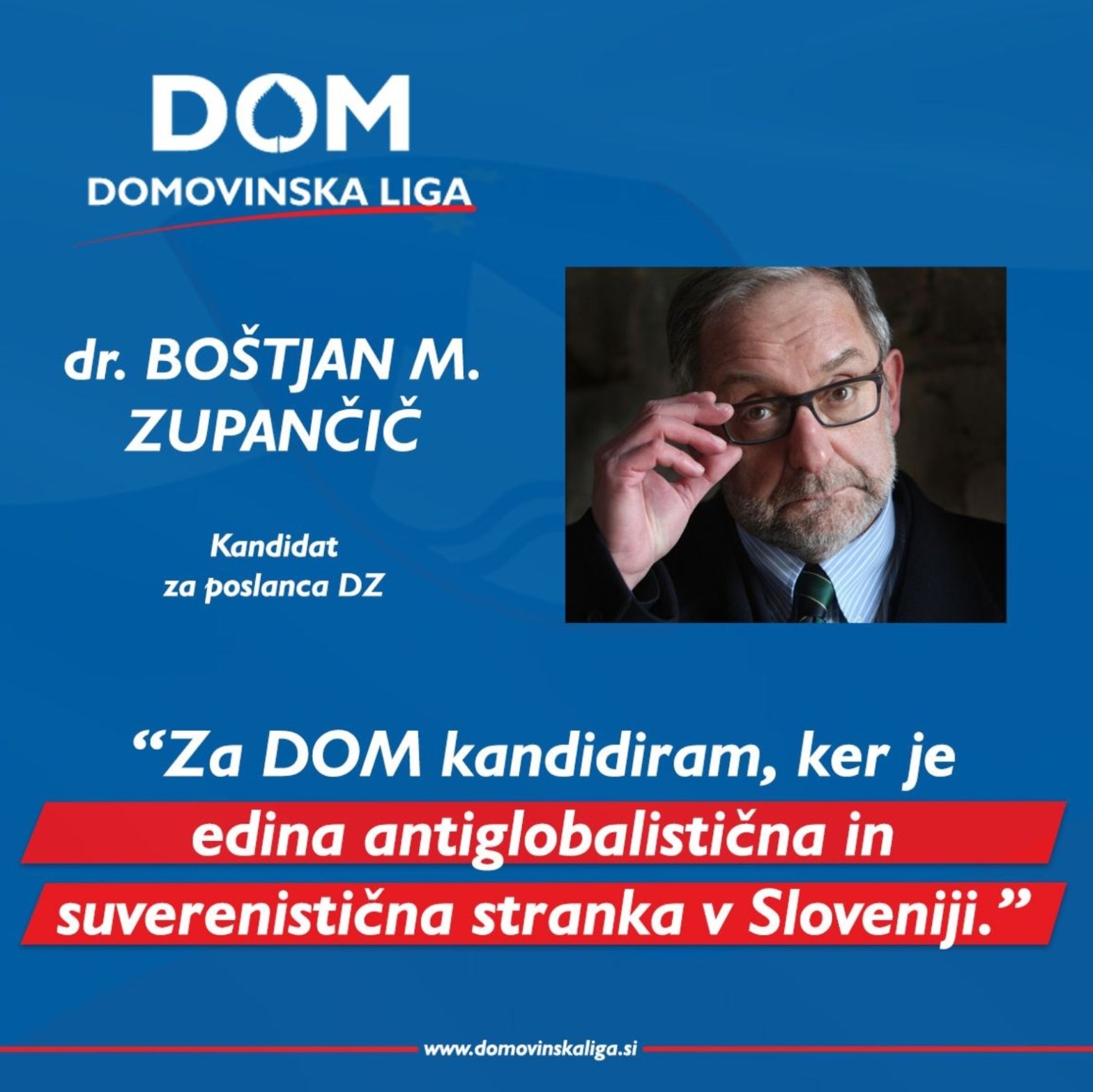 Dr. Boštjan M. Zupančičem kandidira na listi stranke Domovinska liga – https://domovinskaliga.si/ in sicer v VO Ljubljana Center in VO Ljubljana Šiška 1.